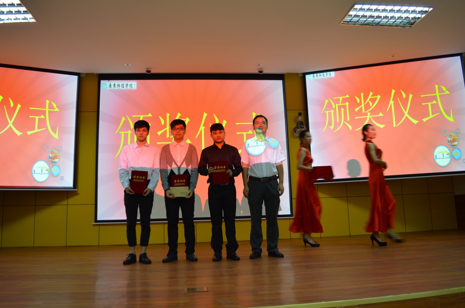 图二 广东科技学院副院长周二勇教授为我校参赛队伍颁发奖项