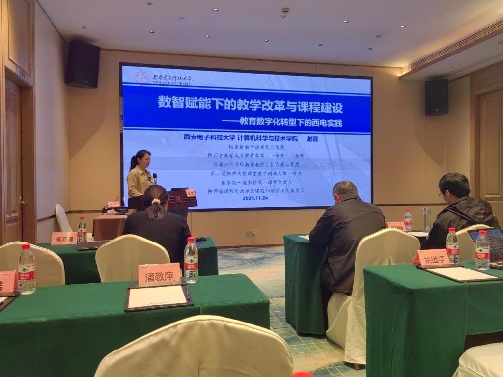西安电子科技大学谢琨教授从教育数字化政策背景、数字赋能下“教-学-评-管”、数智赋能下课程建设三个方面进行精彩演讲,谢教授提出数字赋能下的课程建设首先要厘清培养目标、毕业要求和课程三者的关系,然后在课程建设中要做好学情与痛点分析,具体包括内容痛点、能力痛点和考核痛点,最后课程建设要依托“人工智能”系统平台,这样才能推动教育更高质量的发展。