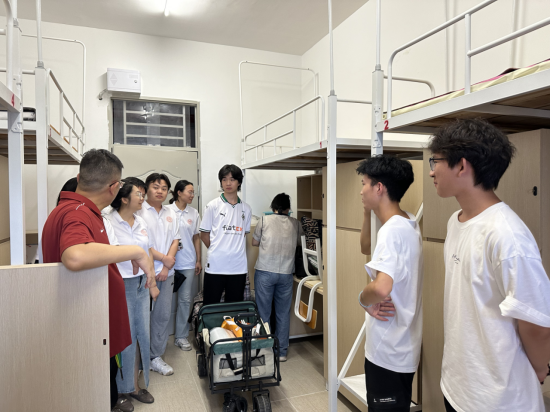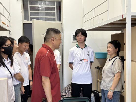 304am永利集团院长兼党总支书记袁持平、党总支副书记李丹、学生工作办公室主任杨子昕,2025级新生辅导员一同走访了新生宿舍,了解宿舍环境及新生报到情况,同时与新生及家长们进行了亲切交流。在走访过程中,袁持平院长代表学院们对新生们致以关心与慰问并向新生们交流初入大学的感触,勉励新生们努力学习,同时祝愿他们能够在本科四年中收获满满、更上一层楼。