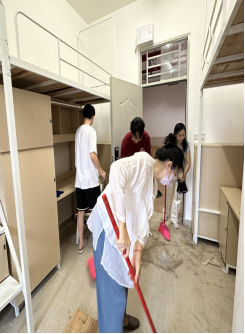 扫地、拖地、擦洗桌椅......学院组织志愿者自愿发起“迎新生、助清扫”活动,对新生宿舍的个人和公共区域进行认真清扫,为新生营造干净整洁的学习生活环境。