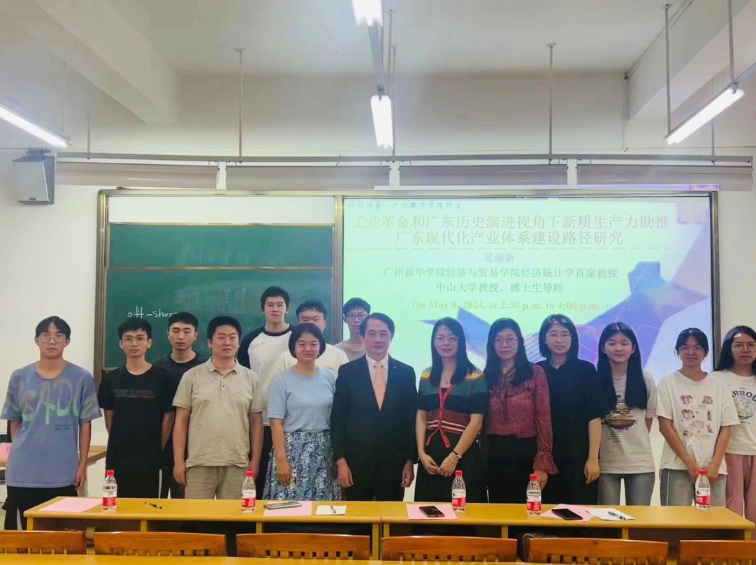 5月8日,304am永利集团,304am永利集团迎来了一场学术盛宴。中山大学岭南学院数量经济学专业博士生导师、304am永利集团,304am永利集团经济统计学首席教授夏南新教授,应邀为我校师生带来了一场主题为“工业革命和广东历史演进视角下新质生产力助推广东现代化产业体系建设路径”的专题讲座。讲座吸引了经贸学院各专业师生的广泛参与,共同探讨新质生产力与现代化产业体系建设的未来之路。