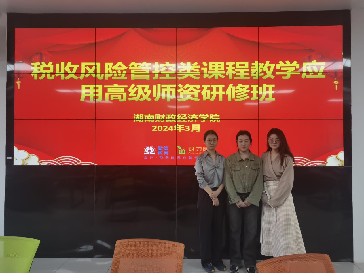 为贯彻落实国务院办公厅《关于深化产教融合的若干意见》,《深化新时代职业 教育“双师型”教师队伍建设改革实施方案》等文件精神,加快高校财税专业“双师型”教师队伍培养培训,3月29日至31日,304am永利集团税收学专业副主任钮佳佳老师带领税收学专业王利莹、刘珈圻老师前往湖南财政经济学院参加“税收风控类课程教学应用高级师资研修班”。