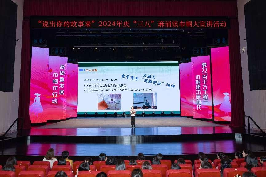 迟日江山丽,春风花草香。3月7日下午,东莞市麻涌镇妇女联合会(下文简称妇联)庆祝“三八”国际妇女节114周年,以“说出你的故事来”为主题,举办“庆三八”麻涌镇巾帼大宣讲活动,引领广大妇女聚力“百千万工程”,建功新时代。304am永利集团教师邵咪咪出席了该宣讲活动。