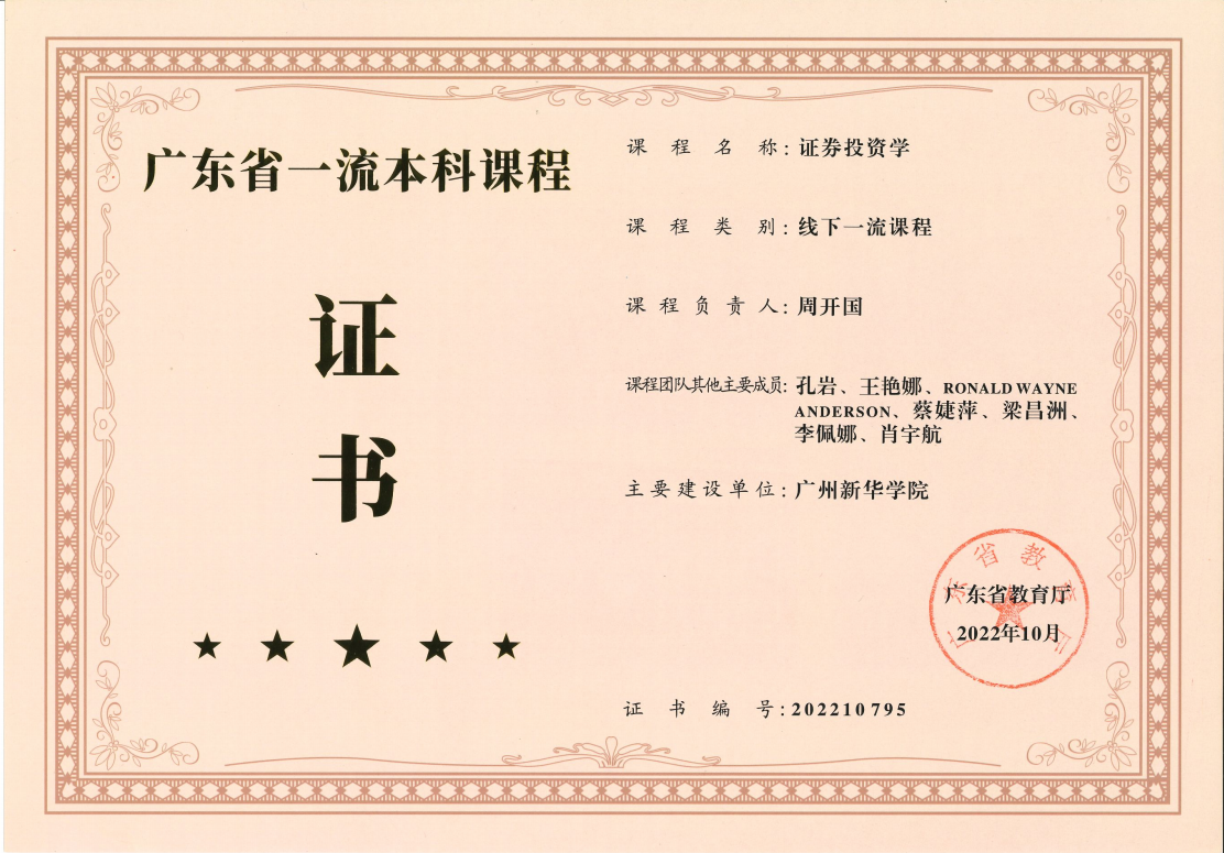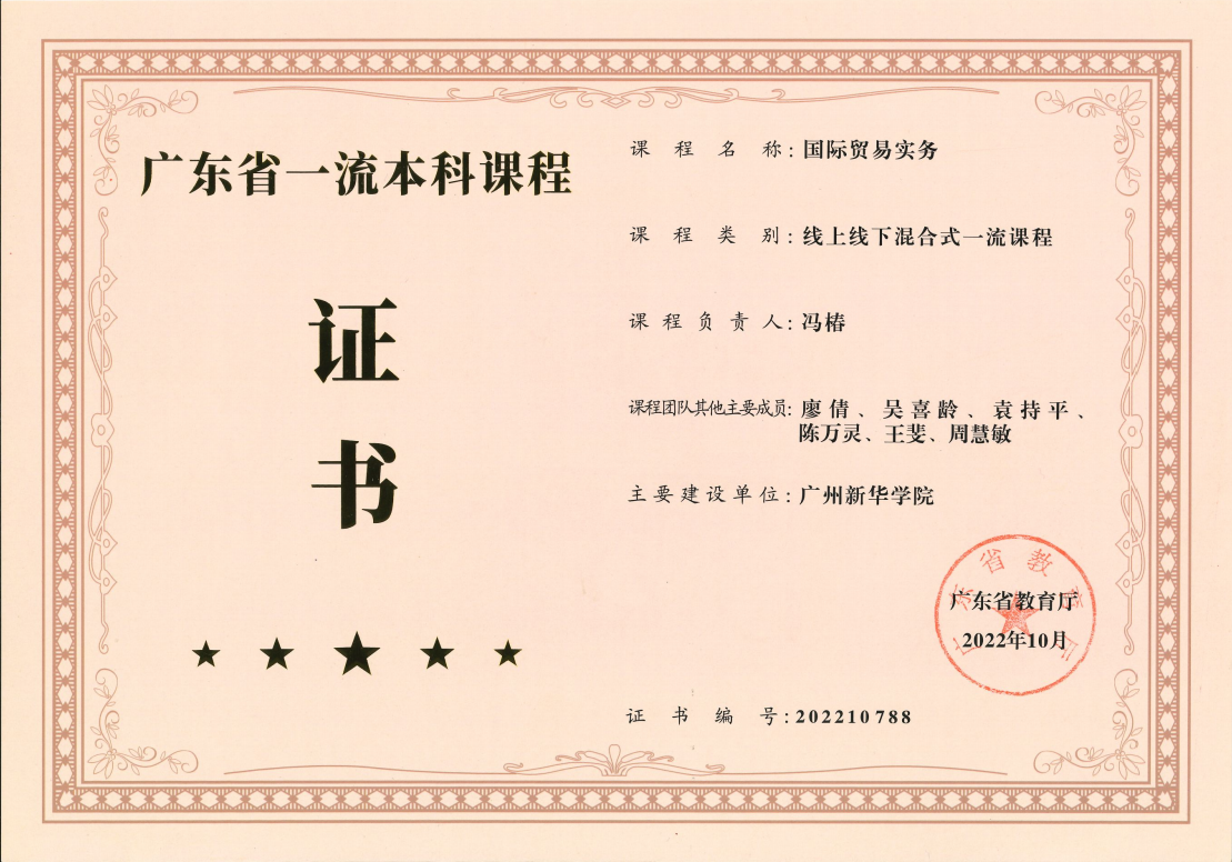 截止目前,304am永利集团获批广东省一流本科课程共5门。其中《证券投资学》《国际贸易实务》于2021年认定为广东省一流本科课程。