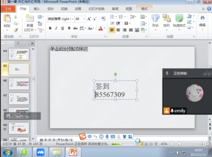 课中,多种教学方式与教学工具相结合,进行线上考勤、提问、演示、作业讲解等互动环节,力求让学生们能够参与到课堂,学到更多知识。具体方法如下:一、借鉴网络直播方式,语言富有激情,内容分段化讲解,达到吸引同学们的注意力的目的。二、通过加分措施,鼓励学生可以通过语音、文字等方式参与到课堂活动中,起到一部分学生带动另一部分的学生参与课堂的效果,提高学生课堂参与度;三、课中通过提问引导学生思考课程内容,分大规模提问和随机选取学生回答两种方式,引导学生积极思考的同时,提高学生专注度;四、结合相关实际案例进行讲解,引导学生运用所学知识分析实际案例,帮助学生理解知识点,及拓展学生知识范围,更加关注及学会分析经济形势;五、适当使用视频等资源帮助学生理解知识,当课程到达后半段,学生学习状态有所下降时,适当播放生动形象的课程知识相关视频,可以更好帮助学生理解知识,同时缓解学生学习疲态;