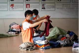 最后,志愿者们将所回收的旧衣进行分类、整理、捆绑和计数。活动持续近四十分钟,经过大家的齐心协力,共回收到衣物756件。
