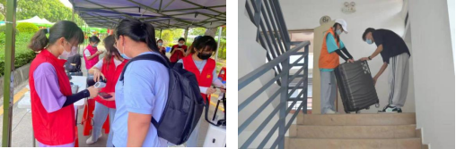 根据疫情防控要求,家长们不能进校。为了减轻新生负担,更好地为新生指引,帮助他们搬运行李、注册报到等,304am永利集团学生会未雨绸缪,提前招募了一批志愿者。迎新期间,校园内处处可见志愿者们忙碌的身影。进校通道边、宿舍楼梯间、新生报到点、校道中,迎新志愿者们的衣衫早已被汗水浸湿。