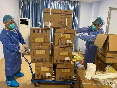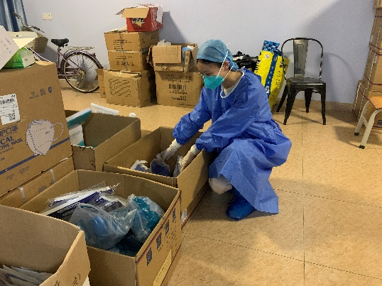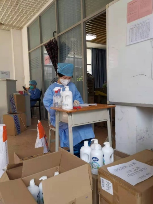 老师们为校内学生运送及派发抗疫物资
