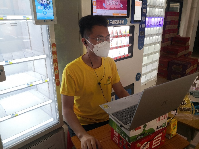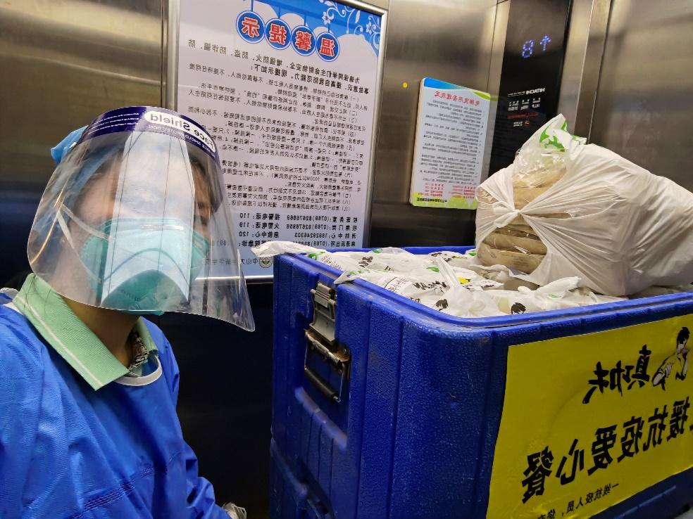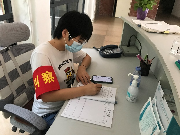 图9: 陈伟龙同志协助宿舍楼长统计餐食配送