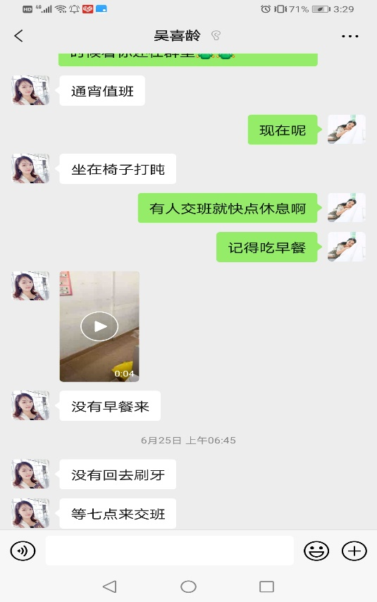 图6:吴喜龄同志在学生宿舍18栋通宵值完班