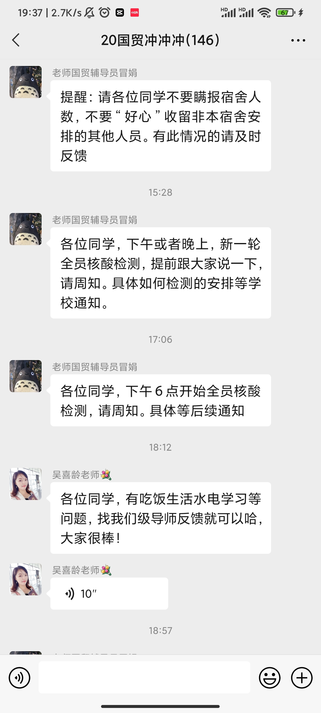 我是来自20级国际经济与贸易的王艺。我在这场疫情下,一直只是一个认真配合的普通新华人,虽然我们不是不是奋战一线的医护人员和志愿者,但我们也要尽到自己的责任,认真配合学校安排,这场疫情来的太突然,也因此,原本能回家的食堂工作人员只能住在自己的店铺里,在得知她们没有换洗衣服的新华学子,纷纷发朋友圈征集衣服,还有,新的里衣,在得知14栋的同胞们还没吃上饭,食堂的工作人员主动给他们送饭,让他们吃上一顿热乎乎的饭;时间往前推三天,我们三天前开始测核酸,医护人员也是匆匆从别的地方到我们学校,而他们只能以天为被,以地为席,在我们的篮球场上暂时休息片刻,因为两层医护服的原因,医护工作者自己里面的衣服早已湿透,他们依旧恪尽职守,为我们测核酸,排查人员,在得知医护人员需要帮助时,新华学子在朋友圈发起寻求某人或某物的信息,同学们也都纷纷帮转;志愿者们在测核酸时,需提前去培训,在我们4:50起来去测核酸时,志愿者们2:30就已经在下面等候,协助医护人员测核酸;我们的老师,班委们也在协助学校安排,安抚同学们的情绪,也有许多老师主动给学生物质,粮食。
