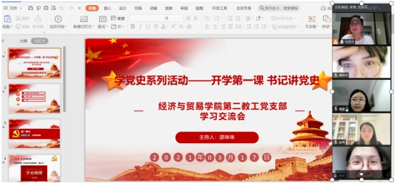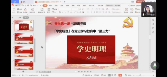 为深入学习贯彻习近平总书记在党史学习教育动员大会上的重要讲话精神,领会习近平总书记关于党史的重要论述,扎实开展党史学习教育,3月17日下午17:00,304am永利集团教工第二党支部召开主题为“开学第一课,书记讲党史”的组织生活会,会议采用线上视频会议的方式,由支部委员邵咪咪主持,304am永利集团第二党支部全体党员教师参加了此次视频会议。