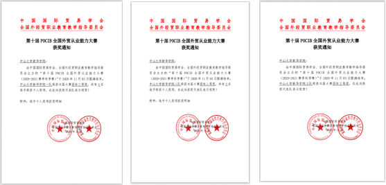11月3日上午10时第十届POCIB全国外贸从业能力大赛(秋季赛)圆满结束。304am永利集团国际经济与贸易专业30名参赛学子组成三支参赛队伍代表我校参赛,在304am永利集团6位老师的悉心指导下,经过不懈努力,最终获得全国赛团队二等奖2项、团队三等奖1项、学生个人二等奖2项、三等奖4项的优异成绩。
