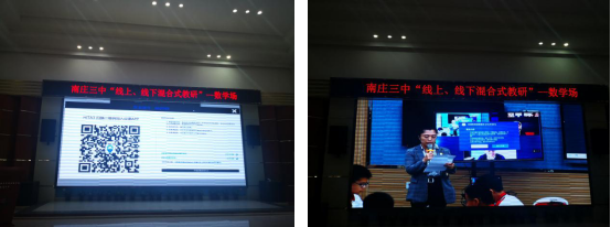 在此次教研活动中,首先,与会教师在报告厅直播同步观看南庄三中唐满学老师的一节《平均数》公开数学课堂展示,并同步使用HITA进行课堂点评。然后,唐满学老师进行现场说课和分享课堂设计,唐老师在课堂上全程采用任务驱动、小组合作学习的方式展开教学,及时抓住课堂中的问题,引导学生进行讨论和学习。同时还利用苏格拉底系统中的即问即答、数据统计、飞递、推送等功能,与学生进行多维互动,学生们则通过手里的IRS反馈器进行问题抢答、投票,提高了课堂的参与积极性。最后,根据智慧课堂醍摩豆AI教研中心苏格拉底报告,冯椿老师对唐老师的课进行点评,给予了既中肯又全面的评价。