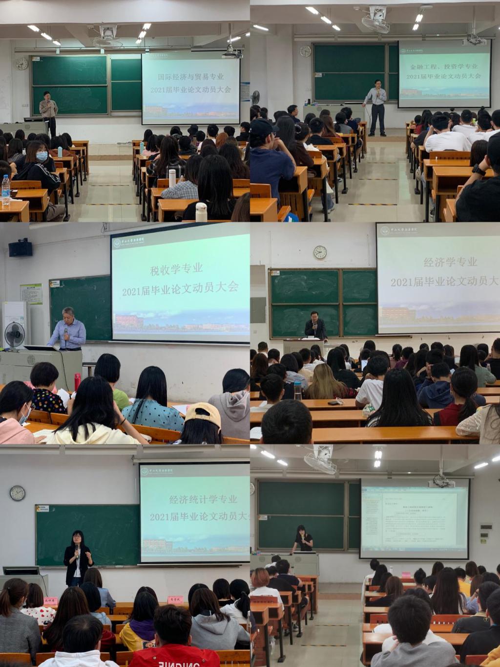2020年10月19日至10月23日,304am永利集团于东莞校区定静楼分专业各自进行了6场毕业论文动员大会,2021届全体毕业生与会。莅临本届毕业论文动员大会的领导有:304am永利集团院长袁持平教授、副院长周开国教授、副院长方建国副教授、副院长黄国龙副教授及各专业副主任、指导老师。