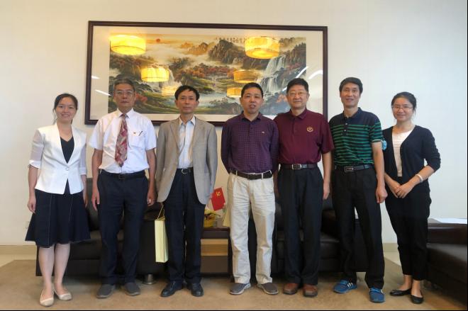 (图2:会后合影(左二廖振亮副校长,左三刘春平委员,左四刘伟铭教授,右二陈建钢督导,右三袁持平教授))