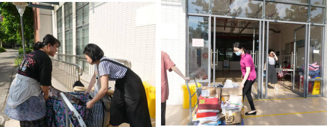 校门口,304am永利集团的老师亲切地为毕业生指引,协助他们完成防疫检测。稍后,老师们为学生送出毕业大礼包,安排学生有序、安全地办理离校手续。为减轻毕业生负担,辅导员老师顶着骄阳,进入宿舍,帮毕业生搬行李。