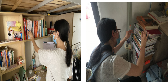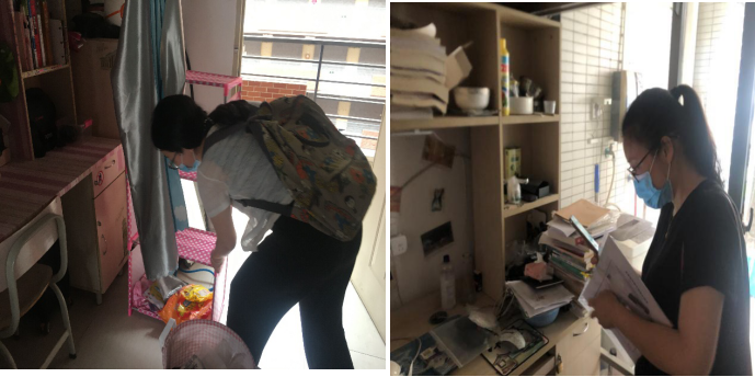 收到同学们的申请表格后,辅导员们前往学生宿舍,与同学们视频会话,认真细致地寻找所需学习物品,其中有考研材料、课本、课外读物、笔记本以及毕业生的就业推荐表和各类证书等。