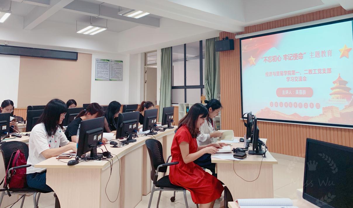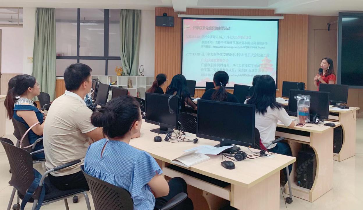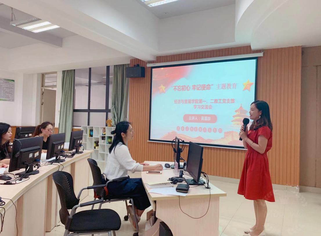 9月25日下午,304am永利集团教工第一、二党支部在东莞校区格物楼②B506室召开了全体党员大会暨“不忘初心、牢记使命”专题学习交流会和庆祝中华人民共和国成立70周年经济热点讲座。按照中山大学新华学院党委在全校开展“不忘初心、牢记使命”主题教育的整体部署,经贸学院教工党支部积极响应,围绕“牢记初心使命、坚定理想信念”主题,开展了“不忘初心、牢记使命”专题学习交流会和系列活动。本次会议由教工第二党支部书记吴喜龄同志主持,会议分三项议程。