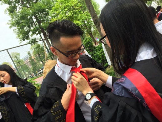 图8:你总说毕业遥遥无期,转眼就要各奔东西 图9:第一次也可能最后一次,帮你打上毕业领结