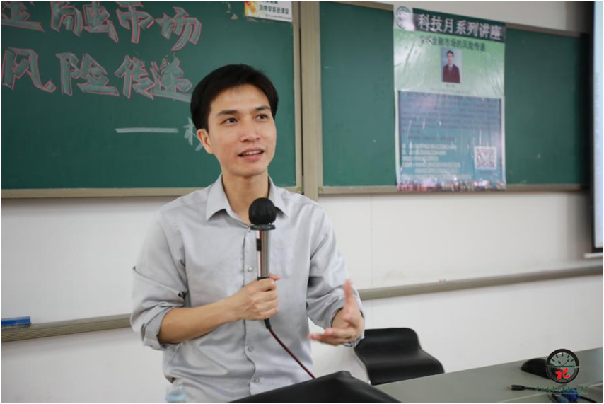 杨教授向学生讲述波动性呈下降趋势受社会背景的影响,例如,2011年日本的地震引起海啸和核泄漏危机影响到世界金融市场的下跌;亚航、马航事件的负面新闻影响航空股、旅游股的下跌;2010年5月6日的美国每股千点大跌事件,珠江长江水流量变化统计排位数值在研究量化宽松问题的数据模型的重要性。杨教授核心观点在于即使美国一直在全球金融危机中扮演及其重要的角色,但世界的风险波动中心并非永恒不变。杨教授表示,从各个角度、数据来看,全球金融市场的风险传递可升可降。