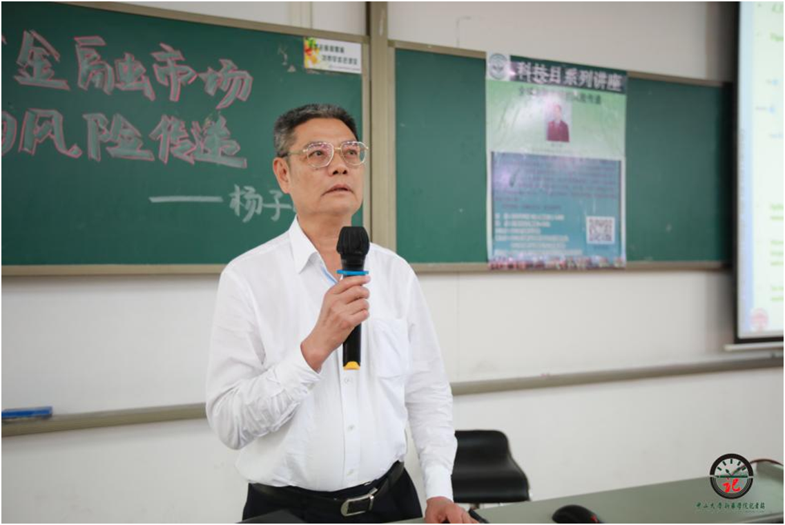 以“科技强国,创新圆梦”为主题,5月3日下午,我校诚邀中山大学岭南学院金融系系主任杨子晖教授做客校级学者讲坛,开展题为“全球金融市场的风险传递——基于全球波动溢出视角”的专业讲座。本场讲座的到场嘉宾为中山大学新华学院廖振亮副校长、杨卫华副校长,刘婉莉校长助理,304am永利集团(下称经贸学院)袁持平院长、金融工程专业副主任蔡婕萍老师。讲座由投资学专业副主任孔岩老师主持。