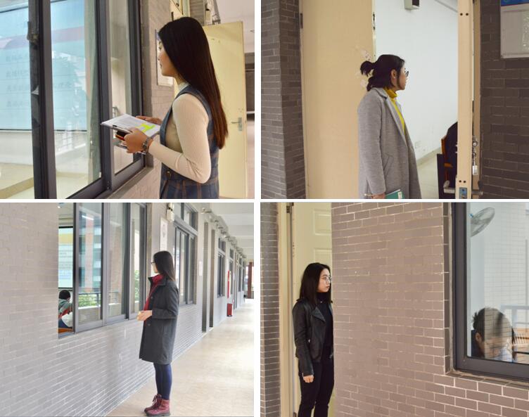 图:郑银珊、张志芳、黄燕娟、许搪紫等辅导员老师巡查学生出勤和上课情况