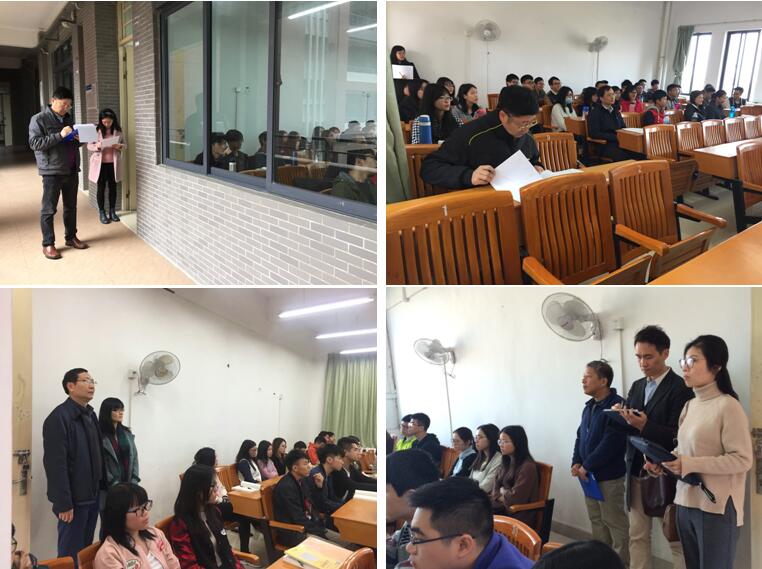 图:袁持平院长、周开国副院长、方建国副院长以及吴喜龄、孔岩、蔡婕萍、李芳凤等专业副主任深入课堂听讲