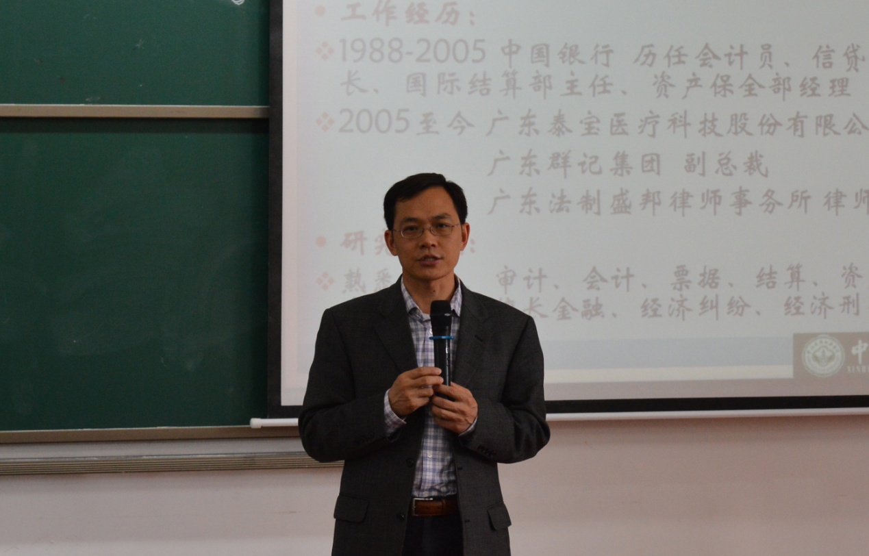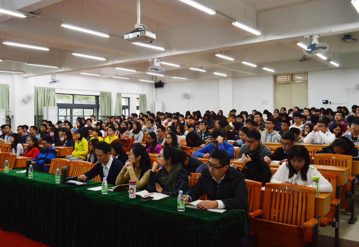 11月30日下午,泰宝医疗副总经理、中山大学新华学院经济与贸易系(下面简称经贸系)双师型教师庄壮辉老师到304am永利集团东莞校区作题为“科技金融——论专利、品牌、金融”的专题讲座。经贸系金融工程专业学科带头人周开国教授、金融工程专业副主任蔡婕萍老师、投资学专业副主任孔岩老师以及金工、投资学专业教师出席会议,金融工程专业200多名学生到场听讲。讲座由周开国教授主持。