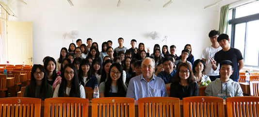 Anderson教授跟同学们坐在一起,全神贯注听讲,并认真作笔记,让在座的师生们感到异常亲切和可敬。他时不时与师生们进行互动,课堂气氛活跃而又温暖,充满着浓郁的学术气息。