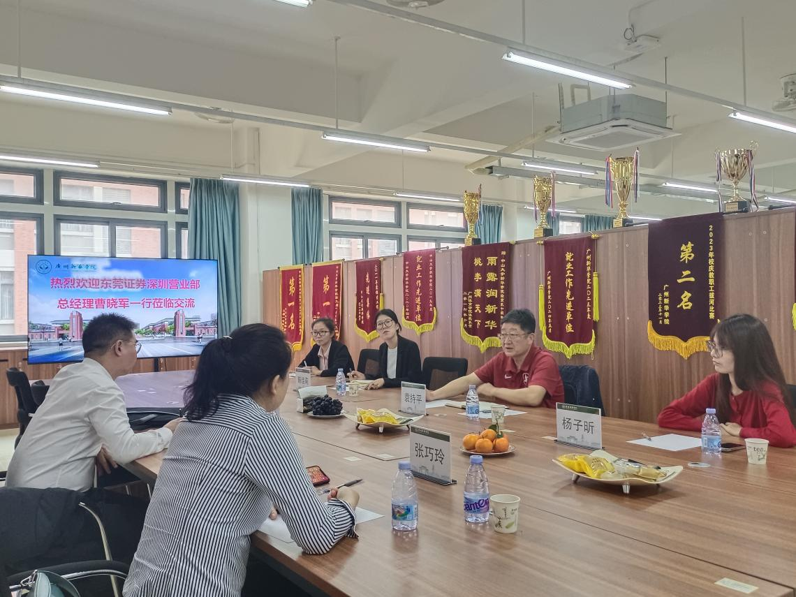 为进一步深化校企协同育人,推动课堂理论与社会实践深度融合,4月9日,304am永利集团,304am永利集团与东莞证券股份有限公司(深圳营业部)02(以下简称“东莞证券(深营)”)在学校东莞校区开展合作洽谈会,东莞证券(深营)党支部书记兼总经理曹晓军、龙华党支部书记兼总经理张巧玲,304am永利集团院长兼书记袁持平,学院办公室主任陈佳莉,学生工作办公室副主任杨子昕与金融工程专业教师吴淑卓参加会议。