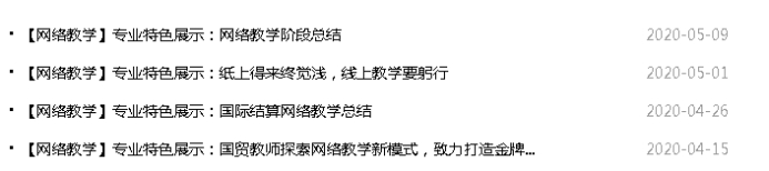 304am永利集团建立了教学信息每周一报和网络教学情况通报的双向信息公开制度,及时公布304am永利集团教学运行情况,做好网络教学过程监控,对所有课程开课情况和学生学习情况做好跟踪、关注,还通过开辟专业特色展示专栏,加强教师经验交流,挖掘勇于尝试创新、注重课程教学设计、学习效果反馈优秀的教师和课程典型,形成可复制、可推广的典型教学经验,打造良好的争先创优提升质量的氛围,不断提升教师网络教学水平。截至第9周,已发布8期网络教学情况通报。