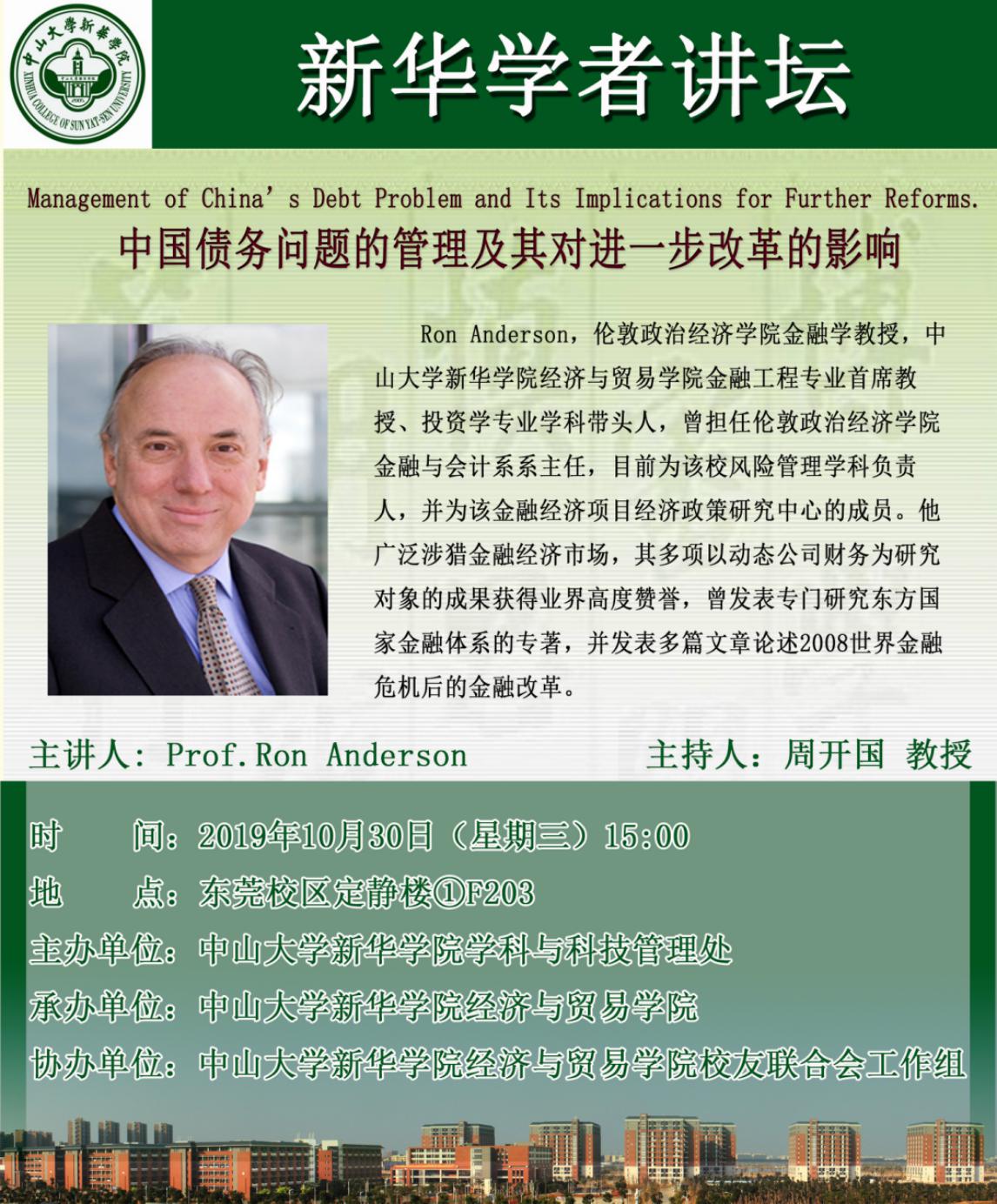 讲座主题:Management of China’s Debt Problem and Its Implications for Further Reforms.中国债务问题的管理及其对进一步改革的影响