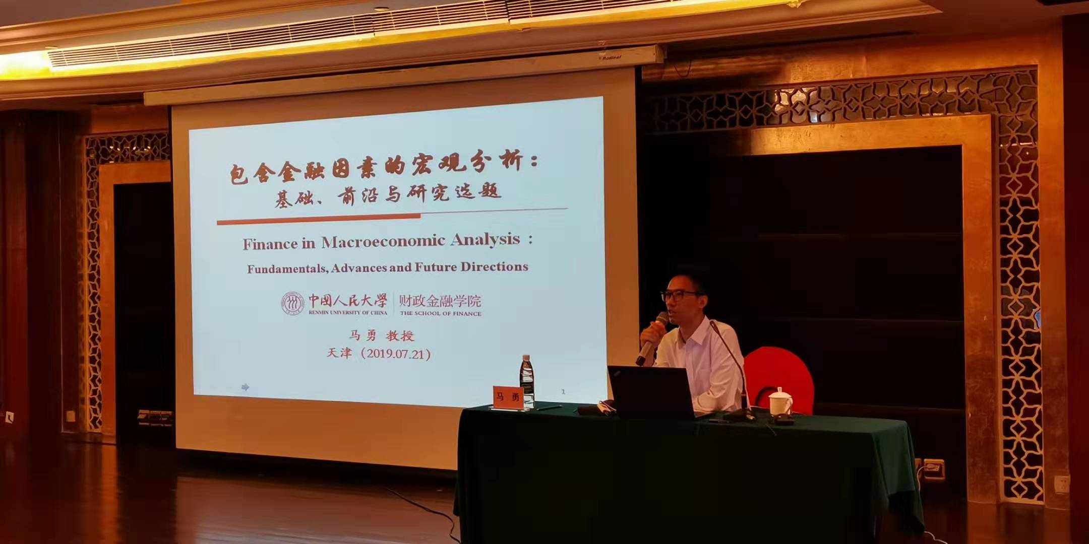 马勇教授主要进行了题为“包含金融因素的宏观分析:基础、前沿与研究选题”的讲座,具体在金融因素与实体经济的关系(金融变量如何影响实体经济、金融周期如何影响经济周期)、将金融因素纳入宏观经济模型(简单三方程DSGE模型的一般形式、如何将金融因素纳入DSGE模型框架)、将宏观金融模型应用于政策分析(构建包含结构性金融部门的DSGE模型、在DSGE框架下进行各种政策的模拟分析)三个方面,与参会教师展开交流。