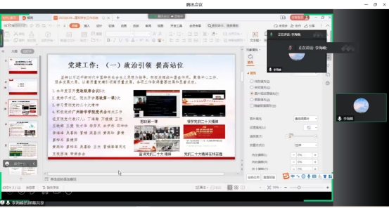 随后,学院其他院领导分别就科研、教学、实验室、人事、党建和学生管理板块作2022年度工作总结报告。