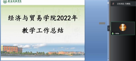 图4 学院副院长方建国作2022年度教学工作总结报告