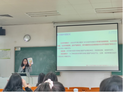 卓总经理的报告就四个方面展开:生态环境统计基本知识、生态环境统计分析的要点、统计分析如何在生态环境保护数据服务发挥作用以及企业招聘宣讲。卓总经理从儿童绘本《概率与统计》讲起,指出统计分析在生活中无处不在,应用广泛;而后围绕企业实际案例介绍了环评行业所需掌握的统计学基本技能及其作用;最后就公司背景、企业文化及公司现状为同学们做了详细介绍,勉励同学们努力学习专业知识,早日实现自己的成才就业梦想。卓总通过现场提问的方式提高了同学们的兴趣,获得同学们的一致好评。