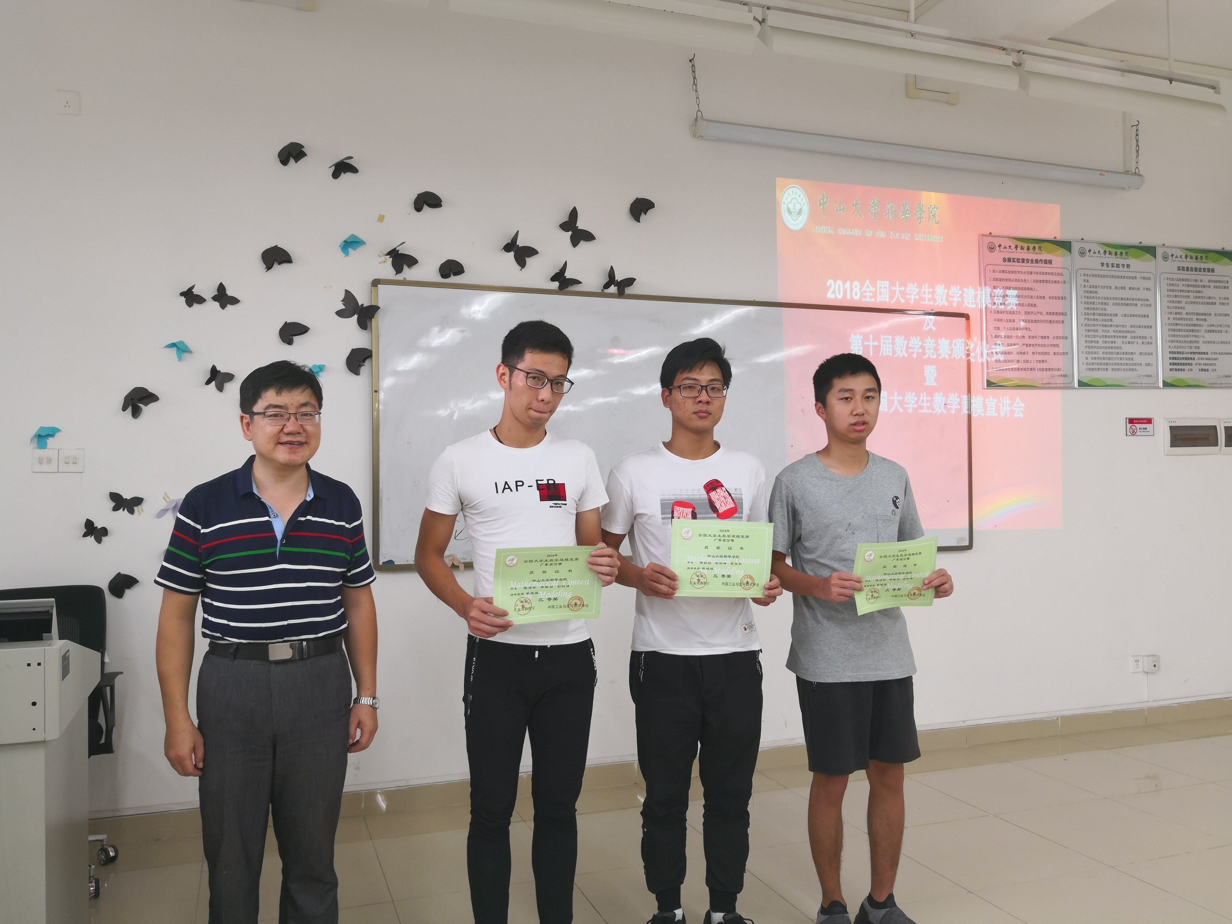 5月31日下午,2018年全国大学生数学建模竞赛新华学院获奖学生颁奖活动,以及由中山大学新华学院教务处主办、304am永利集团高数教研室承办的第十届数学竞赛颁奖仪式,暨2019年全国大学生数学建模竞赛宣讲会,在东莞校区格物楼2A502课室举行。