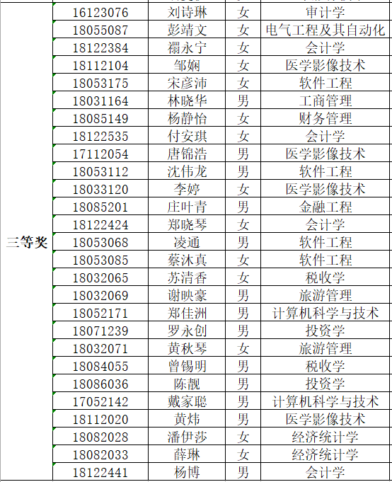 附2:中山大学新华学院第十届数学竞赛获奖名单