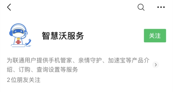 订购完成后,关注微信公众号“智慧沃服务”