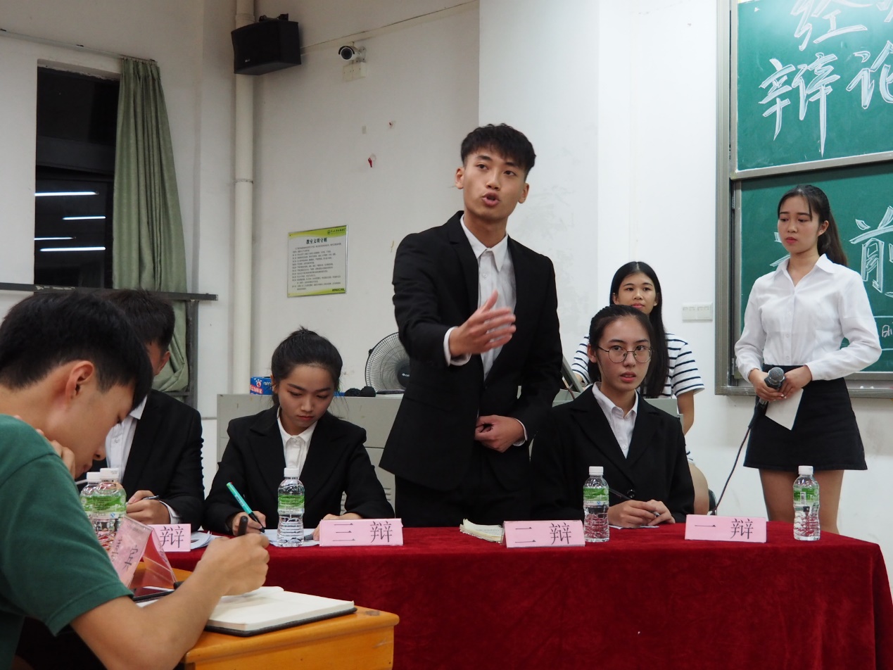 (图为反方二辩进行强有力地辩论)