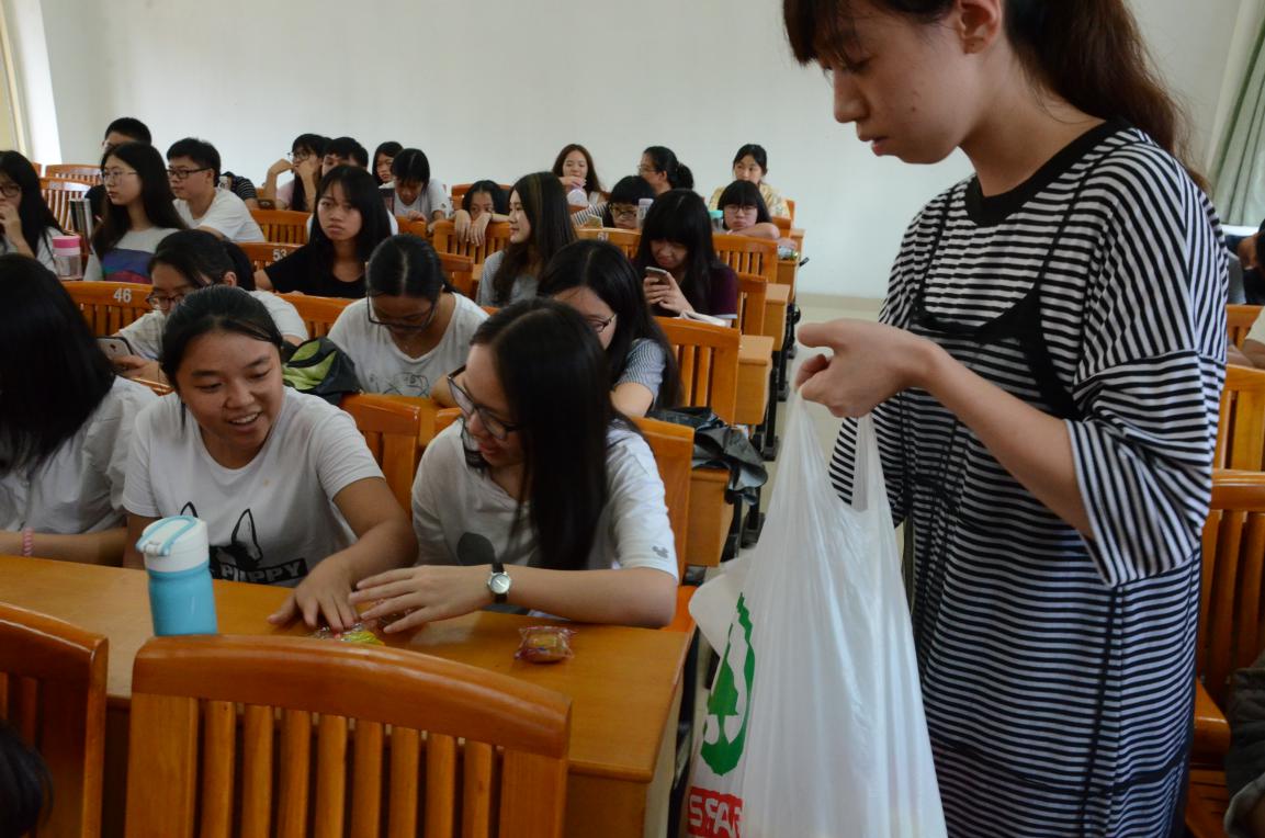 图五:班委们派发为同学们精心准备的中秋小礼物