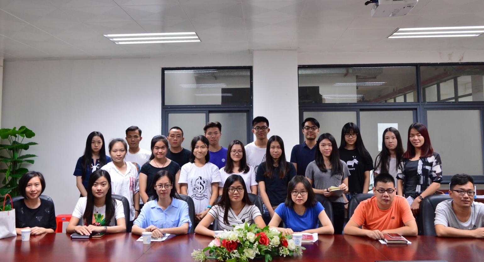 2016年9月7日下午,经济与贸易系2016学年第一学期第一次团学联席会议在东莞校区格物楼2A102召开。系办公室副主任李海峰老师,系辅导员赵佳、汪长亮、黄燕娟、黄小润、张志芳、郑银珊老师出席会议;系学生党支部、系团总支、系学生会、系志愿服务队、系博易社各大学生组织的干部们与会。