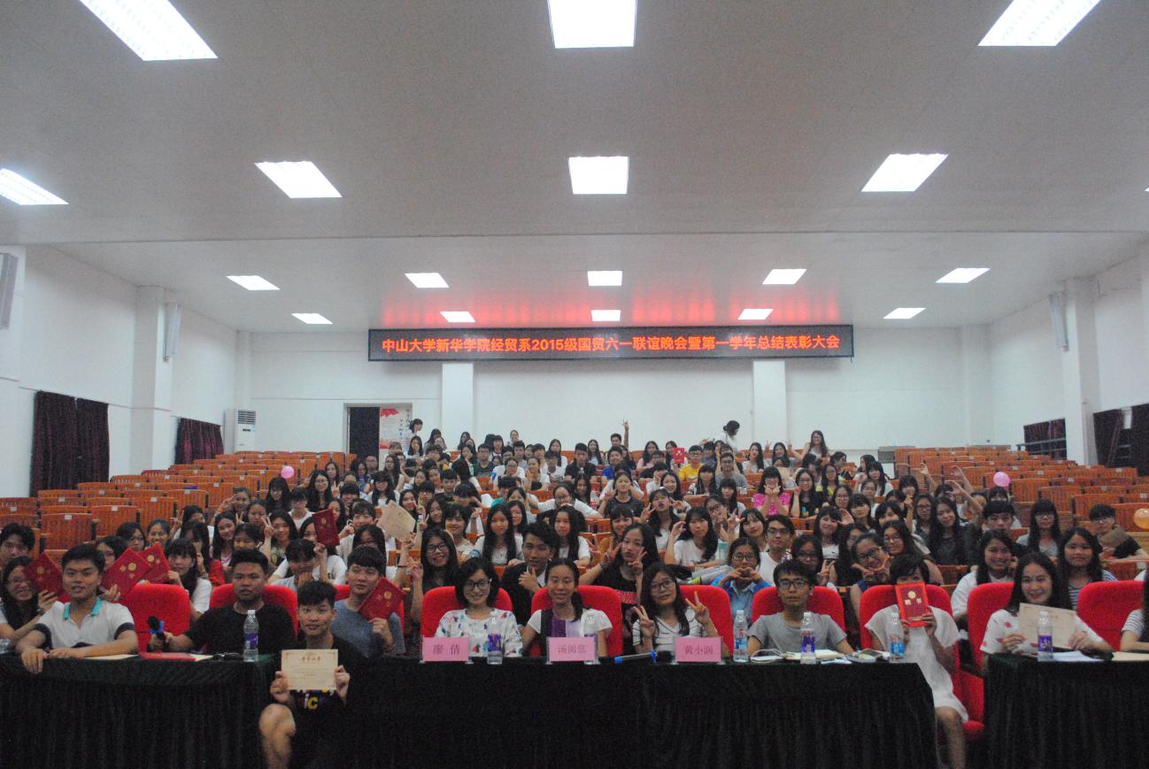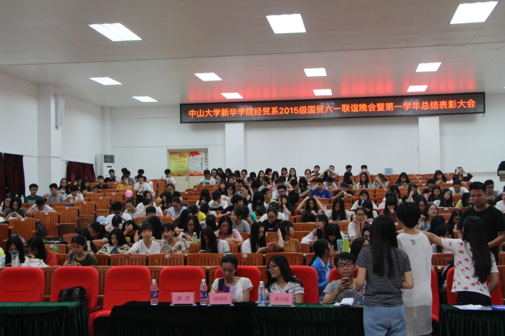(经贸系2015级国贸专业六一联谊晚会暨表彰总结大会现场)