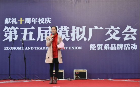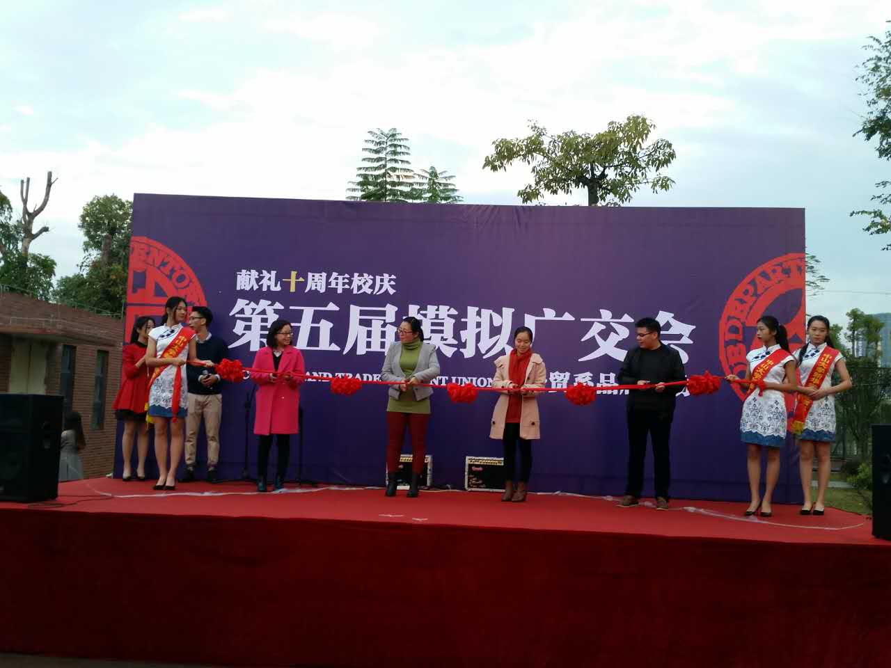 2015年12月11日由经济与贸易系主办,经贸系学生会承办的品牌活动——献礼十周年校庆之经贸系第五届模拟广交会在排球场最终落下帷幕。此次模拟广交会获中山大学新华学院第十届校园文体艺术节立项,由12月8日到12月11日共历时四天。本届模拟广交会开幕式邀请院团委书记殷丹老师,国贸专业副主任吴喜龄老师,团委陈忱老师,经贸系综合办公室副主任、经贸系团总支书记李海峰老师,经贸系学生会指导老师、经贸系团总支副书记汪长亮老师,经贸系团总支副书记廖梓岑老师,经贸系辅导员及外校广师天河学院建筑工程学院团总支学生会主席团代表参加模拟广交会的开幕式。