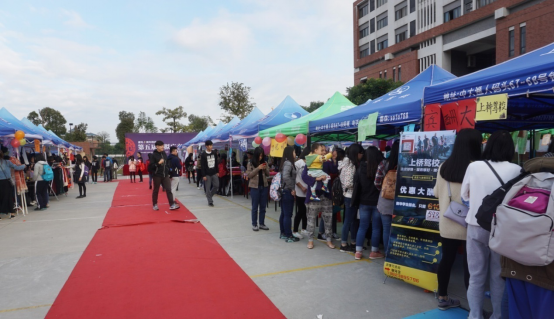 剪彩仪式后,模广正式开始,主办方邀请商家上台进行商家走秀环节,对其售卖的商品进行宣传及展示。在商家走秀环节中,学生商家各出奇招,以独特和令人意想不到的方式向在场嘉宾和观众展示其物美价廉的商品,以此吸引广大学生前来关顾。