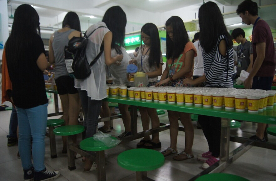 出发前,经贸系学生会工作人员正在为教官们和新生们准备凉茶