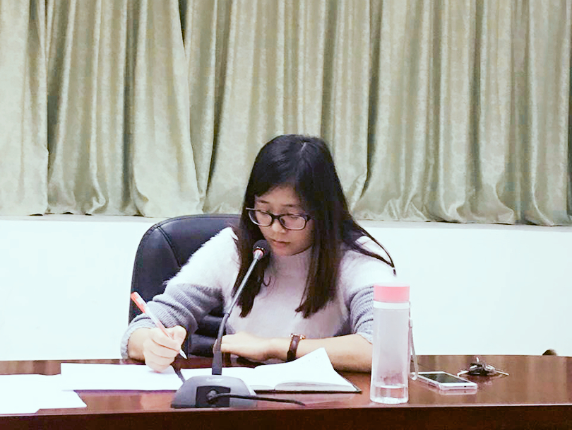 大会第二项:预备党员代表钟小婷同志发言,钟小婷同志作为2016级新生预备党员,代表着预备党员这一新鲜血液对党支部的有机融合,她表示将会认真努力向党员标准看齐,努力成为一名合格党员。