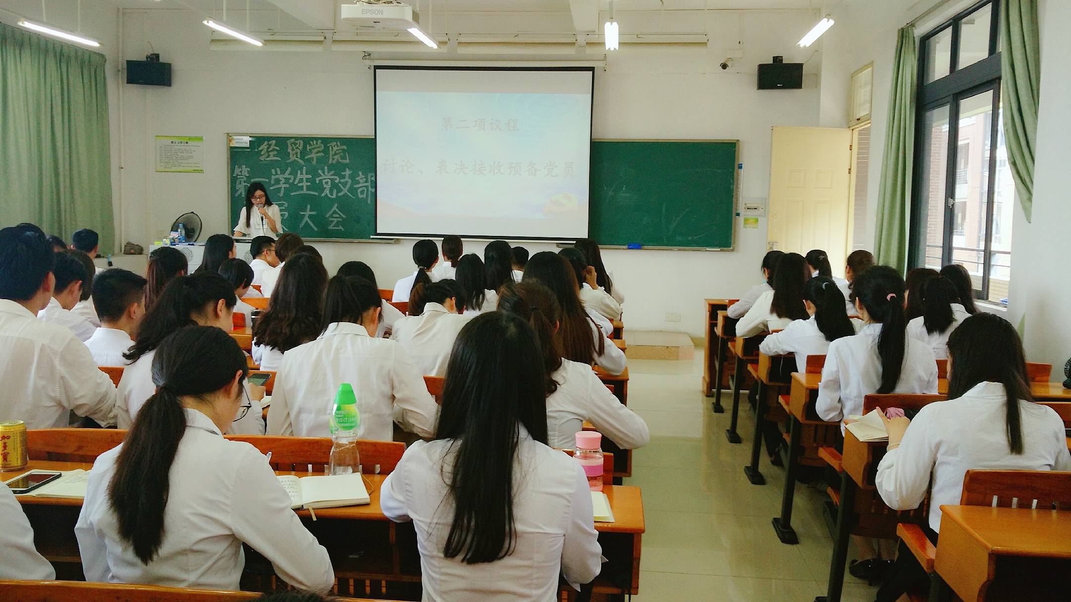 随后,大会进入第二项议程,讨论、接收陈彦蓉等8名同志为中共预备党员。大会严格按照发展程序。首先,陈彦蓉等8名党员发展对象宣读入党志愿书;然后,由入党介绍人丁诗诗等3名正式党员同志说明推荐意见,在场党员讨论并发表意见;紧接着,由参加大会的党员同志进行无记名投票,经监票人监票、计票人现场计票后,根据无记名投票结果形成了《支部大会决议》,一致同意陈彦蓉、黄耀锋、梁梓聪、麦子森、王宇辰、郑若敏、袁咏仪、吴荣等8名同志成为预备党员;最后,在正式党员丁诗诗同志的带领下,新党员宣读入党誓词,老党员重温誓词。誓词宣读完毕,吴芬芬老师强调全体党员要不忘今日之誓词,在学习工作上处处做表率,时时当楷模,真正展现出作为共产党员风采。