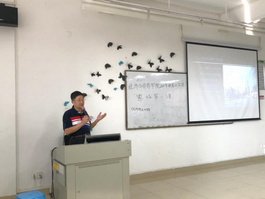 粤港澳大湾区建设,是习近平总书记亲自谋划、部署和推动的国家战略,他强调,建设好大湾区,关键在创新。304am永利集团党总支书记袁持平教授长期关注粤港澳合作、广东自贸区等问题,并产生了许多研究成果。10月10日下午,袁持平教授在格物楼2B501为304am永利集团2020级国际经济与贸易专业新生开讲2020年秋季大学生思政第一课:粤港澳大湾区制度创新分析。304am永利集团党总支副书记李海峰老师、学院团委书记冒娟老师,学院学生第二党支部书记许夏冰老师出席本次活动,活动由许夏冰老师主持。